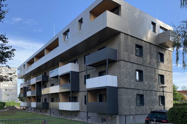 The objective was the sustainable renovation and redensification of two demonstration buildings on the Burgfried residential estate in Hallein. The minimally invasive renovation was carried out through the use of a newly developed multi-functional façade, allowing the residents to remain in the building throughout the process.
